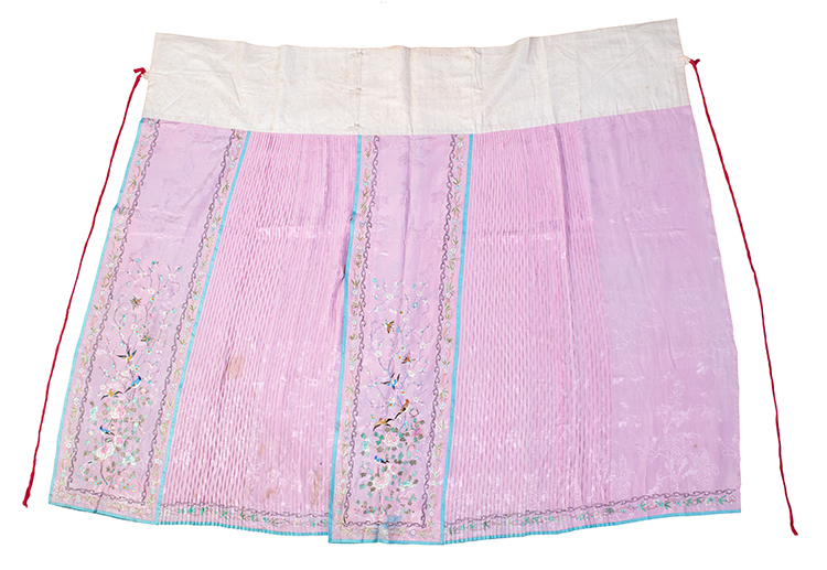 粉紅暗花綢繡花鳥紋魚鱗馬面裙 二十世紀初 長104.5厘米 寬172厘米 廣州博物館藏