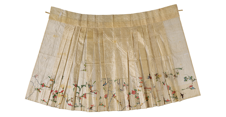 白色暗花紗繡花鳥紋馬面裙 明 長88厘米 腰寬60厘米 山東博物館藏 (圖片由清華大學美術學院提供)