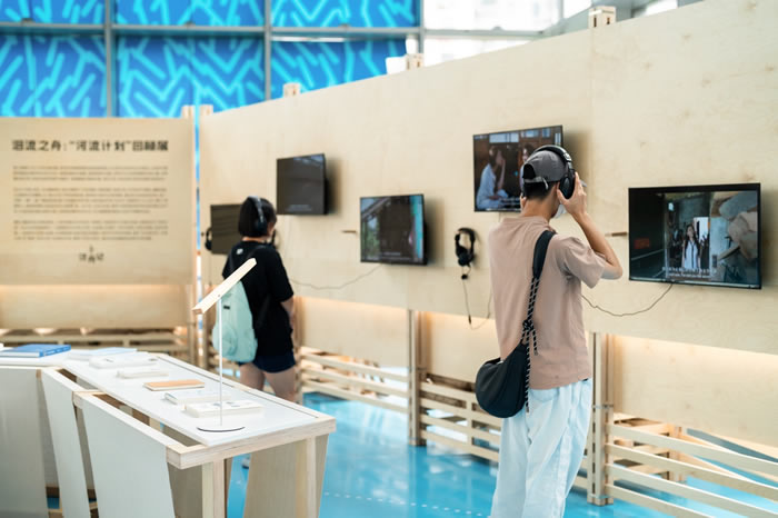 本次展覽通過文獻考據、田野實踐與影像敘事的三重維度,構建起一個立體化的記憶系統,將“河流計劃”的在地探索重新編織成關于珠三角水系文明的深度敘事。其中,由發起人之一陳東主編的《形在江海:珠三角龍舟制造與存續調研筆記》一書作為核心學術文獻,以人類學視角系統記錄了珠江流域獨特的龍舟制造工藝鏈——從百年造船作坊的榫卯技藝,到“起龍”“藏龍”等貫穿歲時節點的儀式系統。該文獻不僅揭示了人、舟、水系三者間的生態依存關系,更直指當代社會中傳統工匠斷層、技藝傳承危機等亟待關注的文化困境。與之形成對話關系的《珠三角河流》系列紀錄片,則以行走式影像記錄拓展了展覽的時空邊界。該片由中國日報與“河流計劃”聯合制作,將鏡頭對準河岸勞作的疍民后裔、祠堂中的祭祀儀軌、以及現代化建設與生態保護的現實張力。其非虛構敘事策略既強化了與地方社群的對話性,又深入挖掘了在地日常生活的文化肌理,為展覽提供了鮮活的視覺檔案。未來“河流計劃”也將出版更多的主題書籍,讓文化記憶在物質載體與符號系統中持續再生。