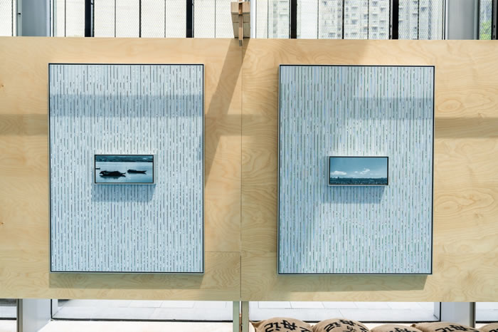 從圖像中提取色彩及其對應的十六進制代碼,并將其與去色處理后的原始圖像并置重組。這一過程重構了圖像與顏色的語境,質疑了圖像與真實的關系,并試圖揭示數字技術如何欺騙人類的視覺系統。同時,作品中陸地與水面的攝影以四分之一構圖和比例呈現,暗示了一種對立和不穩定的關系。