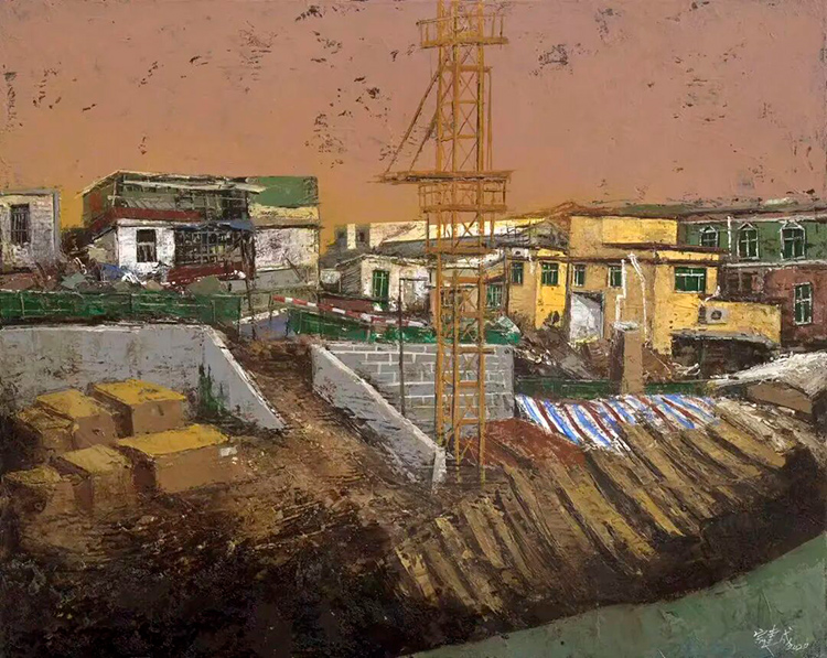 “這幅畫的是運河沿岸的各種形態的霸下雕塑,多用整塊石頭雕刻而成,威武霸氣,是鎮水辟守護河道的神獸?!闭褂[現場,來自北京的參展藝術家當起了運河文化講解員,畫作前方就陳列了一個霸下雕塑,“揚州文化館正好有這樣一尊,跟我畫的形態一模一樣,我們也算是另一種方式的對話?!?/p>