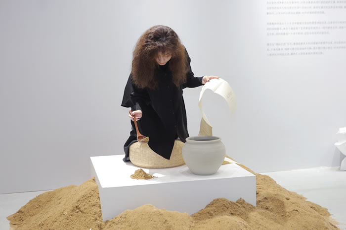由FREE計劃個展藝術家劉恩希、趙軒菲精心準備的兩場行為藝術展演,也于開幕日下午在「非空間單元」現場上演:劉恩?!渡车淖C詞》是在場性極強的宣言式行為展演。作品隱入了對無限的思辨,探討了語言與物質、瞬間與永恒、個體與集體之間的復雜關系。趙軒菲《上崗》將時間換金錢的社會現實濃縮為一個戲劇性的舞臺,邀請現場觀眾置身籠中,親身體驗作品帶來的震撼與沖擊。