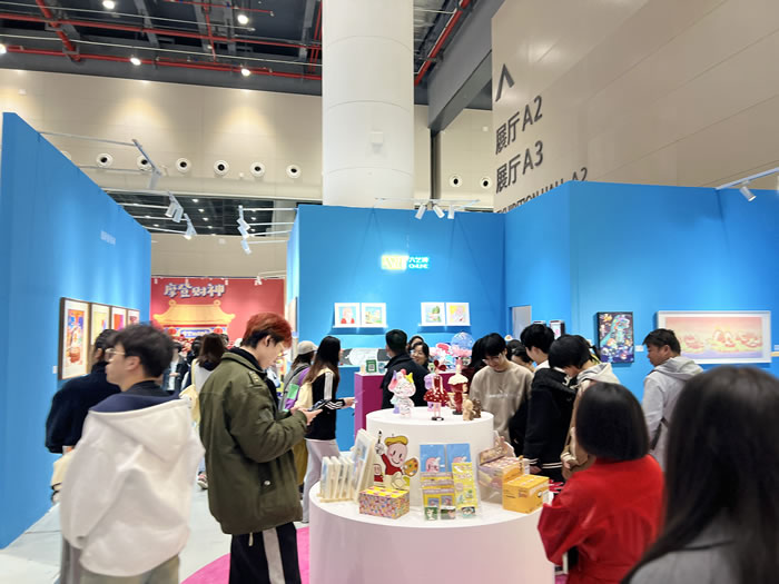 在跨界資源整合方面,為創作者與品牌企業、商業機構搭建起合作的橋梁。在「大藝博×藍月亮:潔凈的藝術」展區,特邀裝置藝術家、插畫藝術家與品牌聯動創作,為觀眾提供全新的視覺體驗與互動體驗。在「火星島 MARS LAND——藝術IP集合展」展區,聯合藝術家、設計師、潮流IP、原創品牌、手工藝術博覽會、AI科技企業等30余家合作方共同打造了一個集合創意空間,展現藝術與設計、藝術與科技、藝術與生活的創新樣本。