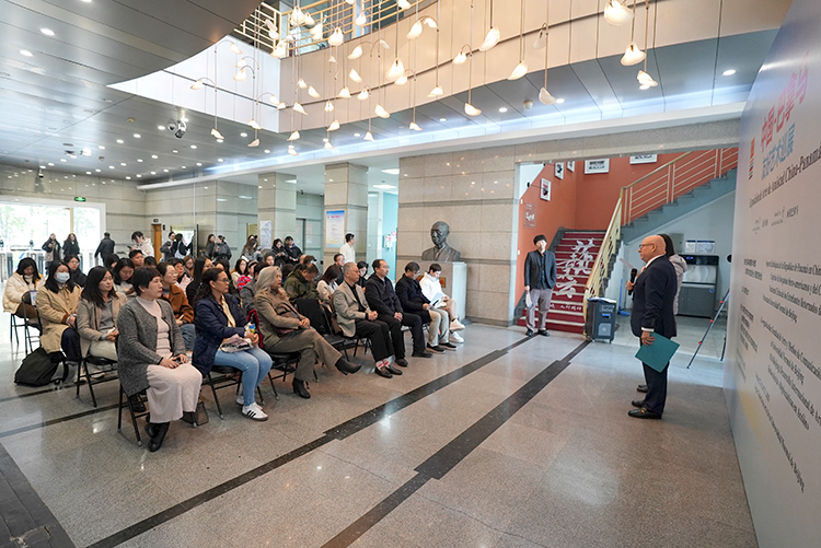 下午三時,開幕式在主持人季海洋副教授的致辭中拉開帷幕。北京師范大學國際交流與合作處處長吳玉軍在致辭中指出,這次展覽不僅是藝術的交流,更是文明的對話。京杭大運河與巴拿馬運河,這兩條分別代表著東方智慧和拉美精神的水道,在藝術的語境下產生了深刻的共鳴。他表示,北師大一直致力于推動跨文化交流,此次展覽正是學校國際化辦學理念的生動體現。