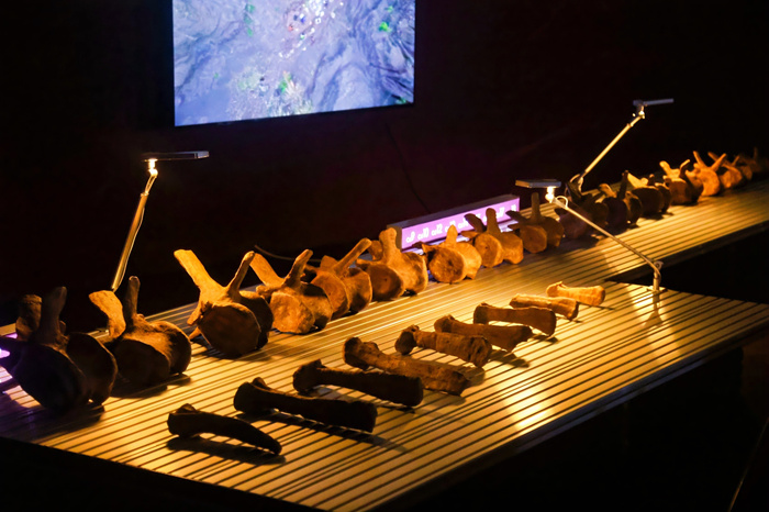 如何在“深時”中記錄人類文明,打撈生命埋藏的意義及其垂直的想象?由中國美術學院劉益紅團隊和中國科學院團隊聯合打造的《中國恐龍計劃|編號20241123》以尤海魯團隊對云南早侏羅世蜥腳型類新標本的實證研究為基礎,通過田野尋訪、μCT掃描、地層標記、數值模擬與算法描摹,把古生物學“硬數據”轉譯為可感知的“圖像一空間”,經由“恐龍”拓維文明尺度、重估人類紀在生命圖景中的新局面。