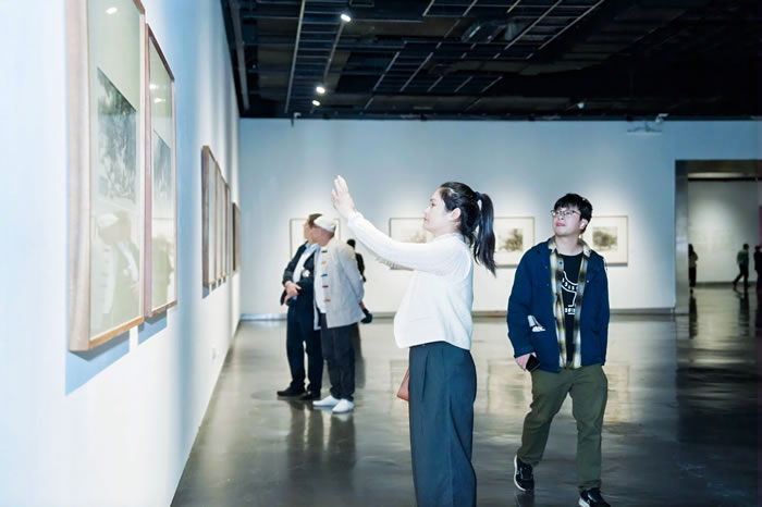 展覽如同一場“直播式遠行”,引導觀眾步入余昌梅的引力場,在宣紙上洇開山脊連綿的逶迤,浪礁纏綿的和鳴,幽谷白練的山風…… 但畫作并非終點,而是折射萬千可能的棱鏡。當城市藩籬中的人們駐足畫前,雪域經幡的震顫、林間晨霧的氤氳,皆可成為個體生命的鏡像。那些未完成的詩稿般的筆痕,邀請觀者以自身經驗補全意境,在“結痂重生”中尋回與自然的契約。
