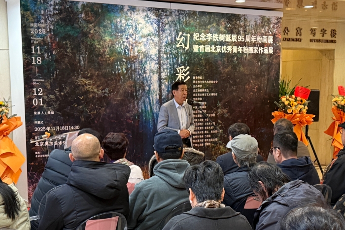 北京粉畫研究會會長于少非在開幕式上說,北京粉畫研究會由李鐵樹先生主導創立,是推動中國粉畫藝術傳承與創新的重要平臺。自成立以來,研究會始終堅持藝術性、研究性與公益性并重的宗旨,深耕粉畫創作、學術研究與美育推廣。李鐵樹先生以畢生精力,躬身踐行,不僅開創了中西繪畫藝術相融的藝術路徑,更加傾注心血在粉花普及教育,推動粉畫走進大中小學課堂。今天的展覽既是對李鐵樹先生藝術人生的深情回放,更是對粉畫藝術薪火相傳的有力見證。