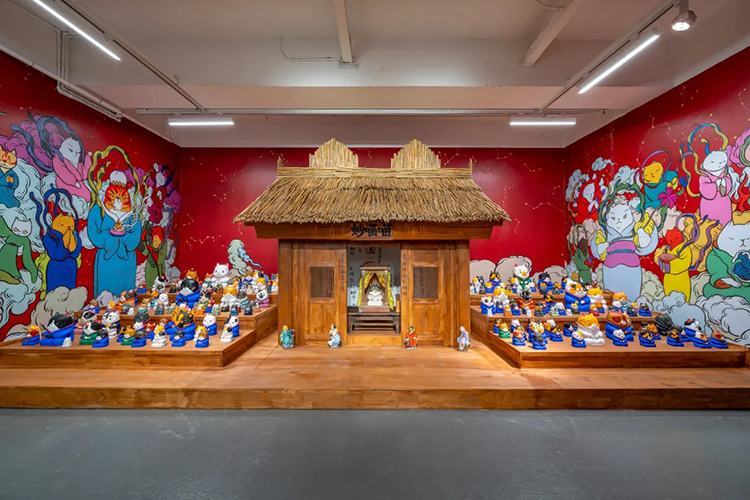 《喵喵妙》是文那在佛山南海大地藝術節的作品。故事始于廣州佛山西樵山上的一只黃皮小貓,它原本是土地公身邊的小貓,土地公總是沉醉于人間山水、偷閑打盹兒,這只聰明的小貓便自告奮勇代行神職,替土地處理起人間的事務來。