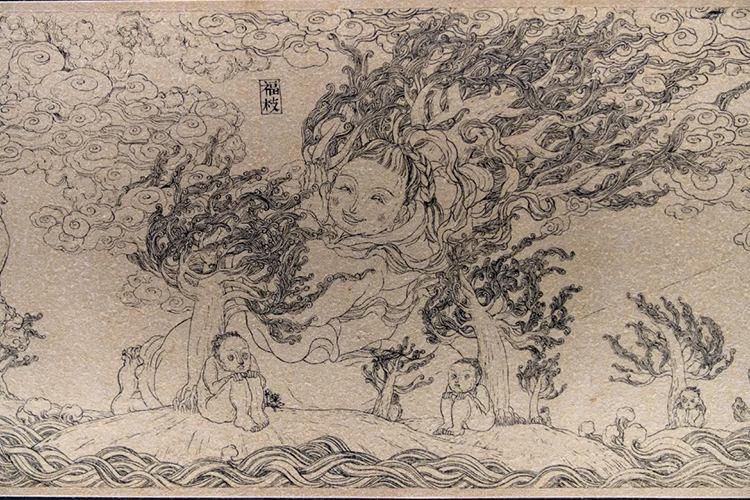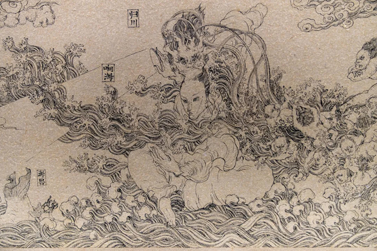 《暗道圖?擇木圖》是文那嘗試用長卷形式進行創作的作品,在連續不斷的構圖之中,她筆下的神仙們仿佛獲得了有機生長的空間,它們向前行進,逐漸衍生出屬于自己的故事。
