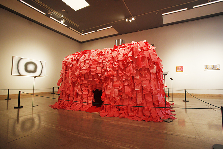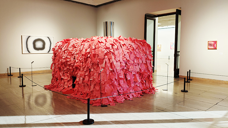 在跨媒介的多元實踐中,戴瑩進一步將藝術視野從個體經驗延伸至更為廣闊的人文關懷。她不僅探索生命內在的循環邏輯,更將目光投向當代社會結構性議題與普通人的生存現實。本次展覽中用中國顏料所浸染的層層宣紙創作的裝置作品,折射出其對人類生命與存在的深切反思與關懷,使得她的創作不再局限于個人與性別的內在敘事,而是逐步構建起連接個體與群體的意識紐帶。