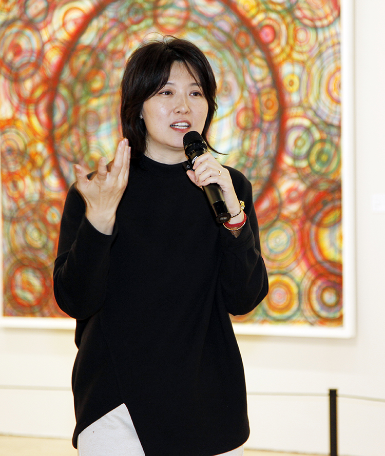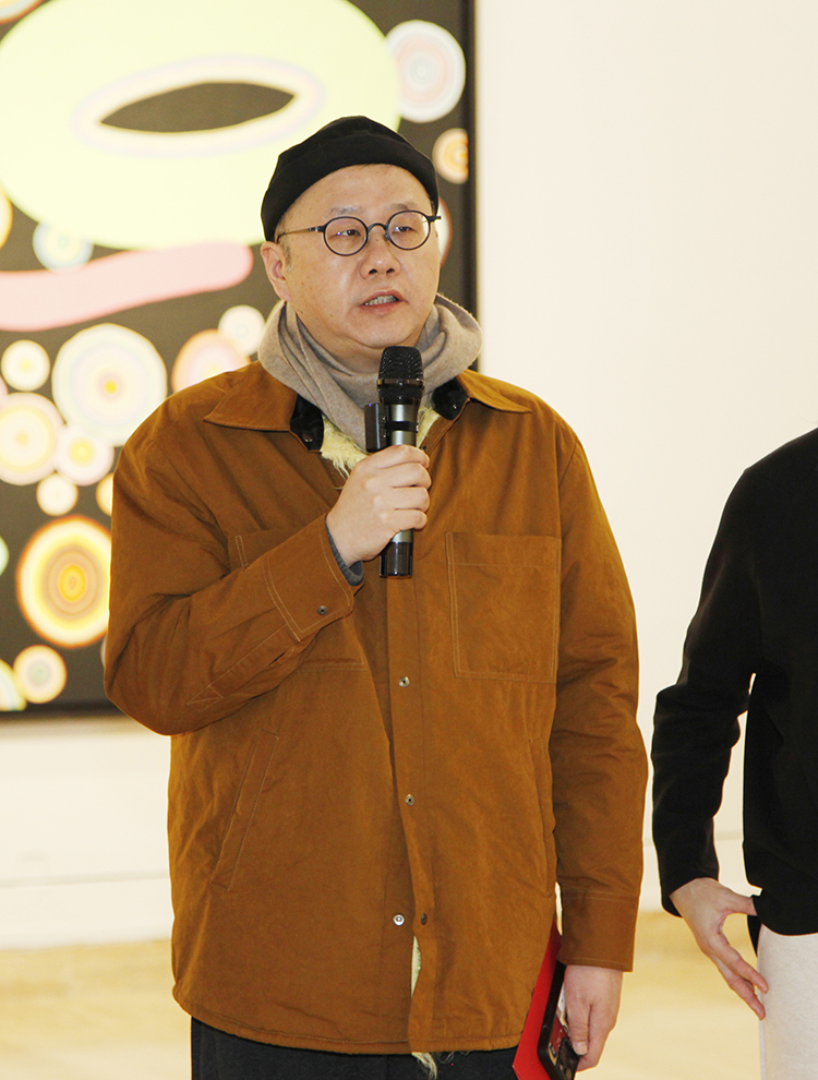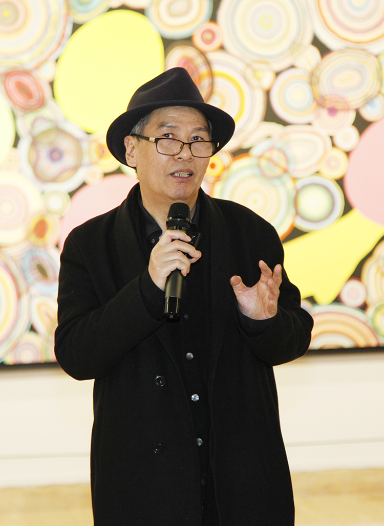藝術批評家段君講話:“藝術家戴瑩有很強的女性的特質,但是在我看來她不是一個女性藝術家,她應該是具有女性特質的藝術家。其實我們中國的女性藝術發展到今天,我覺得不再停留在過去用女性藝術去爭取女權這個層面。她的創作中既有關于她個體生命感受的‘小我’,同時也對蕓蕓眾生有深切的關注,這就是‘大我’”。