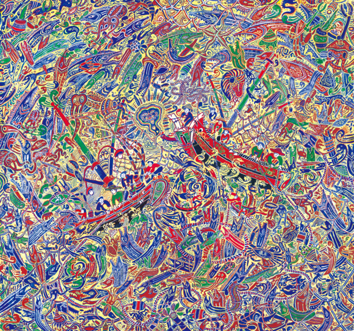 2025年,舟山漁民畫第三次相約北京,以“海上的鄉土世界”為主題,呈現一場跨越近十年的藝術盛宴。中國鄉土藝術作為記錄鄉村變遷的重要藝術形態,以其豐富而多元的在地特征構建社會主義新農村的文化圖景。舟山漁民畫藝術,正是改革開放以來浙江乃至全國鄉土藝術發展的樣本個案。它既承載著波瀾壯闊的海洋文化的地域性敘事,又煥發著時代景象與民間文化發展的內在生機,在政策支持與藝術機制的雙重驅動下,成為鄉土藝術融匯中國鄉村文化振興進程中富有多元價值的藝術現象。