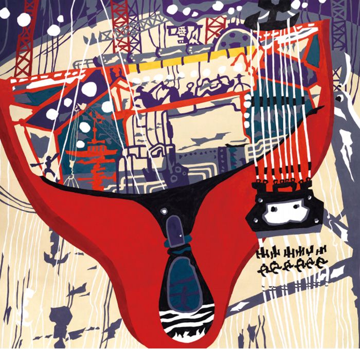 新曲篇以“海韻新章”為歌,20件作品記錄著新區發展和海島生活的日新月異??绾4髽蛉绾顼w躍,中國(浙江)自由貿易試驗區、大宗商品資源配置樞紐等國家戰略相繼落地。這些充滿時代印記的藝術表達,將漁民畫從東海地域文化的活態載體,升華為記錄鄉村振興、海洋強國戰略的視覺檔案。