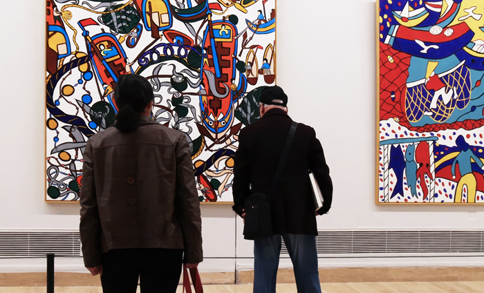 “我們希望通過這次展覽,在一個全國性的舞臺上,讓更多人感受到舟山漁民畫的新變化,漁民畫不僅可以畫漁民生活,也可以記錄城市的發展變遷?!敝凵綕O民畫協會會長朱國安說。