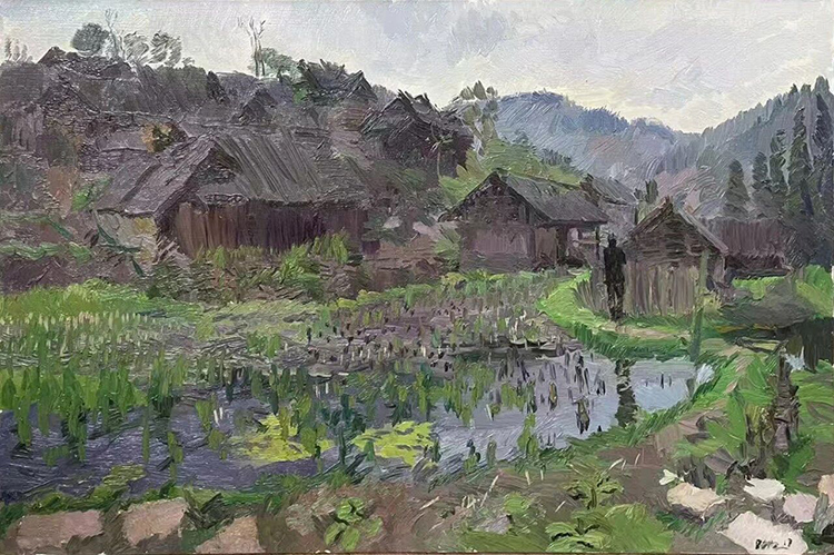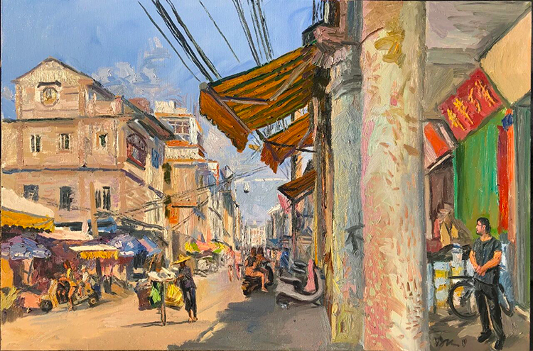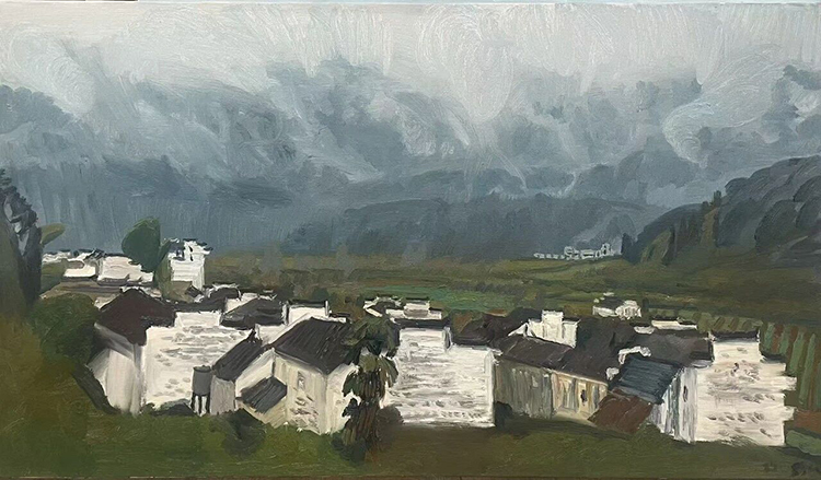 中國美術家協會主席范迪安認為,張路江在繪畫本體語言的理解與實踐上,延續了中國油畫前輩藝術大家追求精神性、文化性的高度自覺,以簡練而有力量的筆觸捕捉自然物象的生機,使畫面呈現出鮮活而蓬勃的生命力。同時,他將油畫語言與中國寫意精神融匯,作品中透露出富含文人氣質的藝術修養,這種融合并非形式層面的筆觸或光色效果,而是建立在主體意識基礎上的藝術表達。他敏感于現實景觀中的歷史印跡和時代特征,以時代為對象,將觀察與體驗內化為畫面的精神能量。因此,他的寫意并非寫“現實之意”,而是通過對可見現實的提煉、概括與超越,走向寫“時代之意”。他作品中的光與色、抒情的造型筆調與神韻充滿和煦的人文溫度。