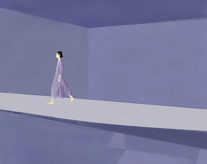 我們希望藝術家堅持這條“哪都不靠”的道路,因為這條路的名字,就叫“房瑩的風格”,這些畫作不是在向時尚界或傳統繪畫界作匯報,而是在創造一個屬于自己的世界。我們要感謝時間的呵護與天賦的慷慨,在那個專屬于房瑩的世界里,時間被折疊,記憶被縫補,女性以修長的背影和出神的狀態,走著一條只屬于她們自己的、輕盈的秀臺。