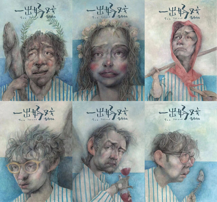 《一出好戲》系列人物手繪海報,邱炯炯,2018年,紙上綜合材料,53 × 42厘米,鳴謝:黃渤(此系列由邱炯炯受導演黃渤特邀為《一出好戲》主要角色手繪人物海報,分別為:黃渤、舒淇、王寶強、張藝興、于和偉、王迅)