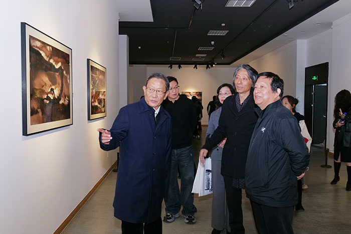 當天,展覽學術主持、中央美術學院油畫系教授劉商英,中國人民大學藝術學院教授劉明才,北京電影學院教授何澄,中國美術學院教授吳方,新疆維吾爾自治區吐魯番市鄯善縣羅布泊歷史博物館館長武宗云,江蘇省文學藝術界聯合會副主席、江蘇省美術家協會副主席、中國工筆畫學會副會長徐惠泉,原蘇州市委宣傳部副部長、蘇州市中共黨史學會會長高志罡,蘇州市委黨史工作辦公室二級調研員、蘇州市中共黨史學會副會長諸曉春,常熟市政協主席沈曉東,原常熟市人大常委會主任、常熟市對外文化交流促進會會長秦衛星,常熟市文體廣電和旅游局副局長王筱虹,常熟市美術家協會主席顧曉東,蘇州工學院黨委副書記李俊峰,蘇州工學院副校長王繼元,原常熟理工學院黨委書記許霆等領導和專家出席開幕式。