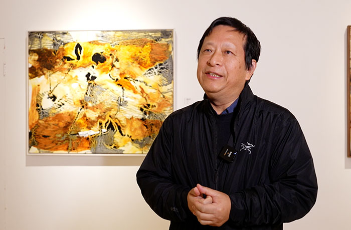 江蘇省文學藝術界聯合會副主席、江蘇省美術家協會副主席、中國工筆畫學會副會長徐惠泉在接受采訪時說:“縱觀趙東誠的作品,我感受到一條從具象、意象到心象的演進之路。作為常熟人,他的血脈中自然流淌著傳統的基因,對筆墨亦有持續的追求。他大量臨摹黃賓虹,研習黃公望。因此,即便是那些趨向抽象的動態構圖,也不是冰冷的形式探索,而是帶著傳統筆墨溫潤的底蘊。與前輩藝術家一樣,他也選擇了行走這條中國文人、藝術家的必經之途。他走向新疆,深入荒原,在沙漠中描繪胡楊,那份堅韌與力量到今天已經轉化為一種內在更深層的語言。這其實是藝術發展到一定高度后,自然生發的一次爆發與蛻變?!?/p>