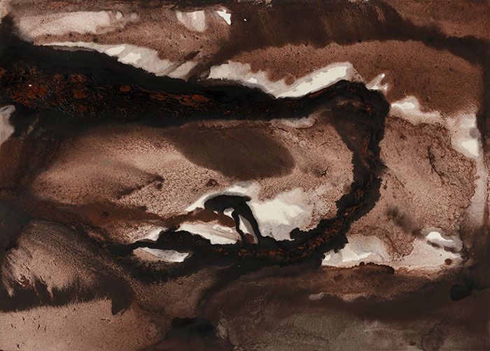 在劉商英看來,趙東誠雖生長于江南,卻走出江南,走到了遙遠的西北,又將他對西北的體驗重新帶回到江南的情境中。其畫作并非單純形式語言的探索,而是“先有體驗,后埋入內心,再吐納”的過程。在行走的過程中,趙東誠也一直在回望傳統,回到他曾經潛心研習的黃賓虹的水墨世界,體悟古人如何在行走中感知內心與自然的關聯?!八M宰约旱姆绞接^照萬象,既寄情傳統山水,也深入更原始、更荒蠻的自然深處。西北大地與江南水鄉相距甚遠,巨大的反差似乎喚醒了東誠原本狂野的心,原始沖動涌現在作品中,引領他進入自由冒險的世界。在那里,直覺想象力讓畫面充滿視覺意象,他在似與不似、感性與理性間游走,找到了內心的通道?!?/p>