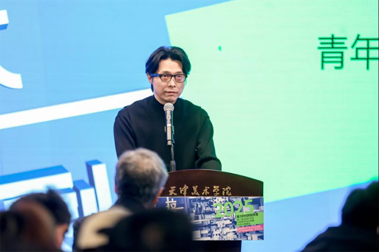天津美術學院人工智能藝術學院盧思屹作為青年教師代表發言,他介紹了“算法之夢、但生活還在那里”青年教師作品聯展。該展覽匯聚18位教師的前沿創作,旨在“新藝科”語境下探討技術與生命經驗的連接,強調技術不僅是視覺手段,更是重新提問世界的工具,展現了創作與教學相滲透的學術思考。