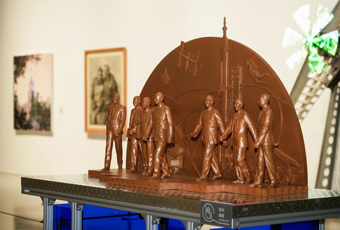 中國文聯黨組成員、副主席、書記處書記諸迪觀看展覽作品《光谷綜合體地面景觀——星河》(湖北美院文化發展有限公司公共藝術作品)
