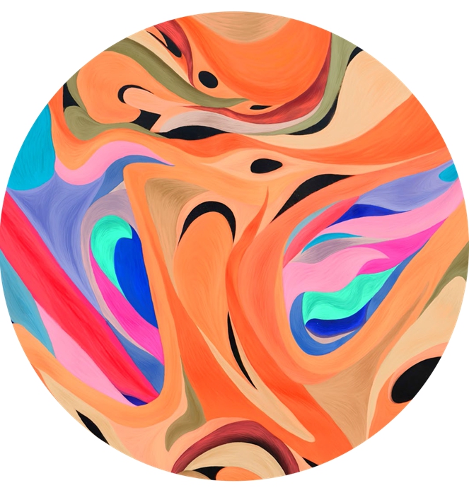 中國國家畫院創研規劃處處長袁學君指出張夢柔的藝術創作以當代視角融合傳統壁畫與重彩技法,師承嶺南名家陳新華、林順文,注重色彩的大膽創新與求變精神。其作品將傳統元素如星象、天地紋樣與現代語言結合,體現“天人合一”理念。在主題上,她探索天地人系列(如北斗、地球),并融入跨文化色彩,展現工筆與寫意的平衡。