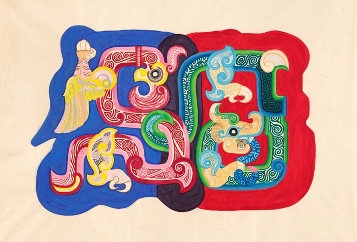《家》 2022年 100cm×100cm宣紙、顏彩、礦物質顏料