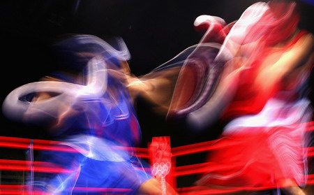 2004年8月20日:希臘雅典,男子54公斤級拳擊預賽的第一回合,泰國選手沃拉柏對戰白俄羅斯選手卡瓦齊。作者: Scott Barbour/Getty Images/China Foto Press